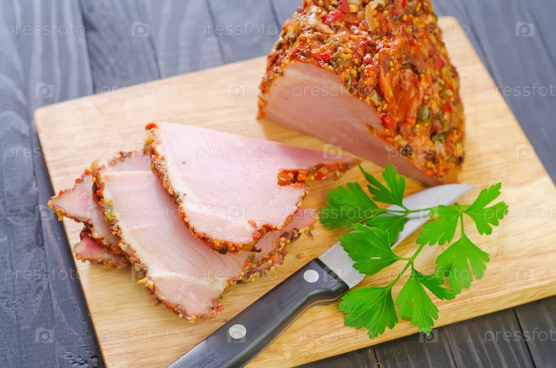 Копченое мясо на столе
