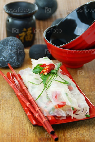 Весенние роллы с рисовой лапшой и овощами
