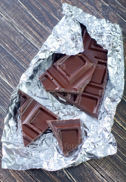 Шоколад в фольге на столе