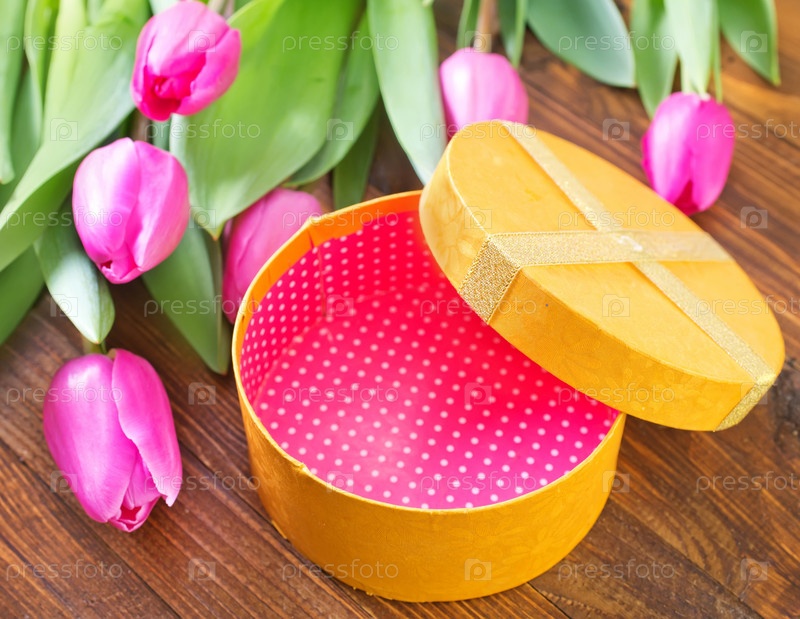 Подарочная коробка и букет