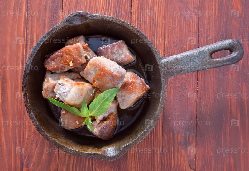 Жареное мясо в сковороде