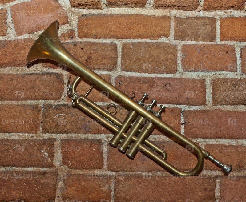 Оркестровая труба на фоне кирпичной стены
