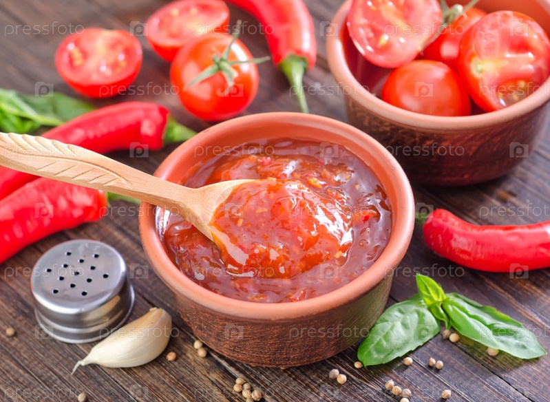 Соус и свежие овощи на столе