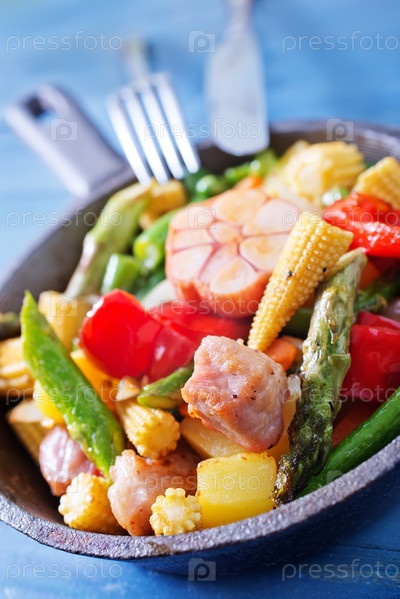 Жареное мясо с овощами