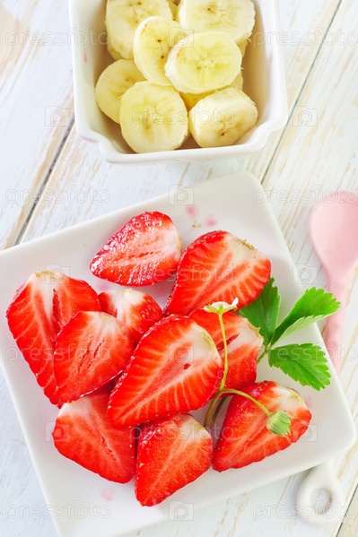 Бананы и клубника на столе