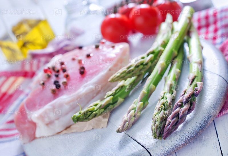 Сырое мясо со спаржей