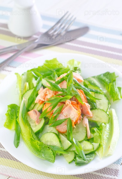 Салат с лососем и огурцом