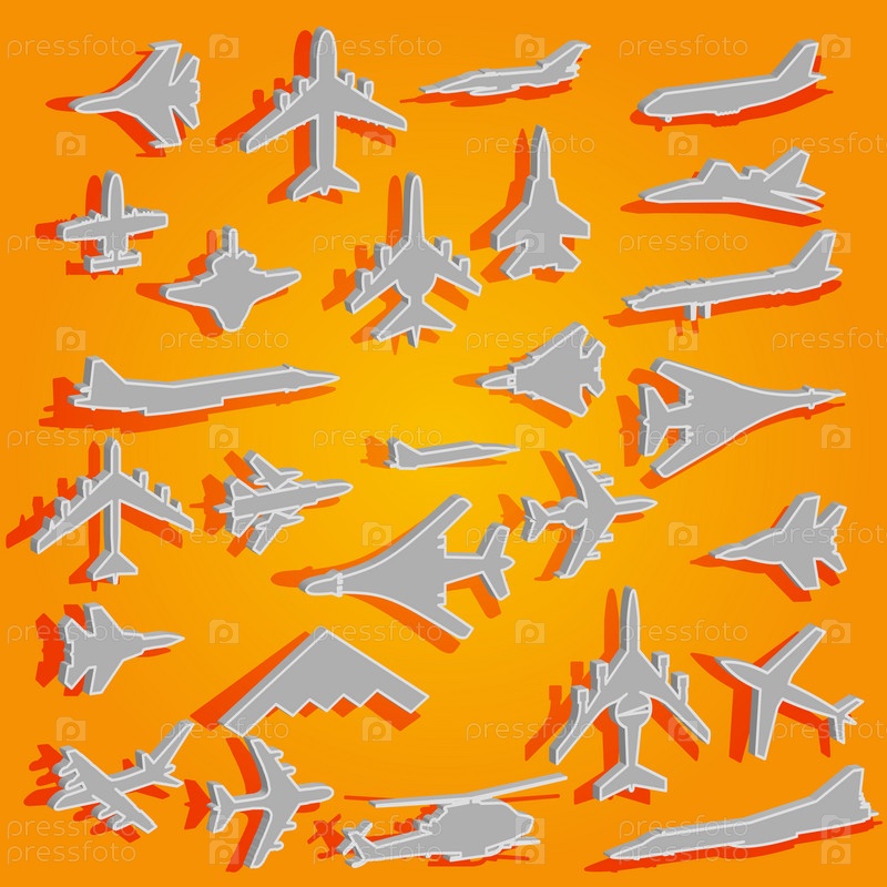 Векторная иллюстрация с силуэтами военных самолетов