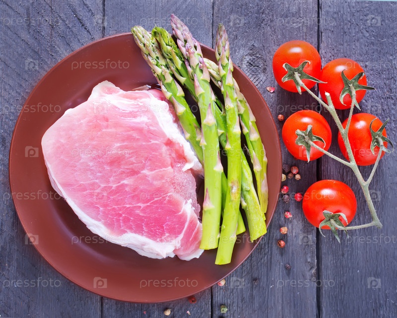 Сырое мясо и спаржа