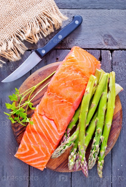 Сырой лосось и спаржа