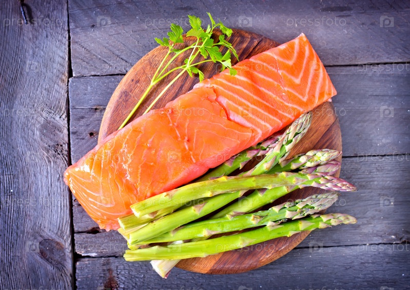 Сырой лосось и спаржа