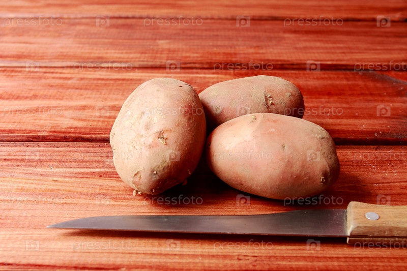 Картофель и нож лежащие на столе
