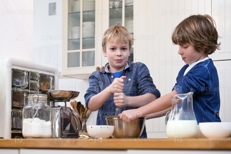 Мальчики готовят десерт