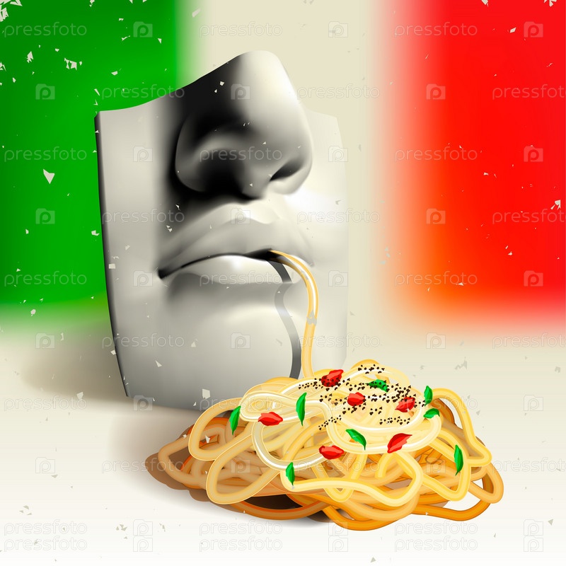 Маска Давида, поедающая пасту на фоне итальянского флага