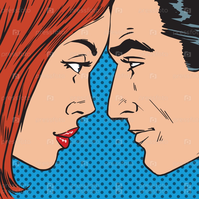 Мужчина и женщина, глядя друг на друга лицом поп-арт комиксы ретро стиль