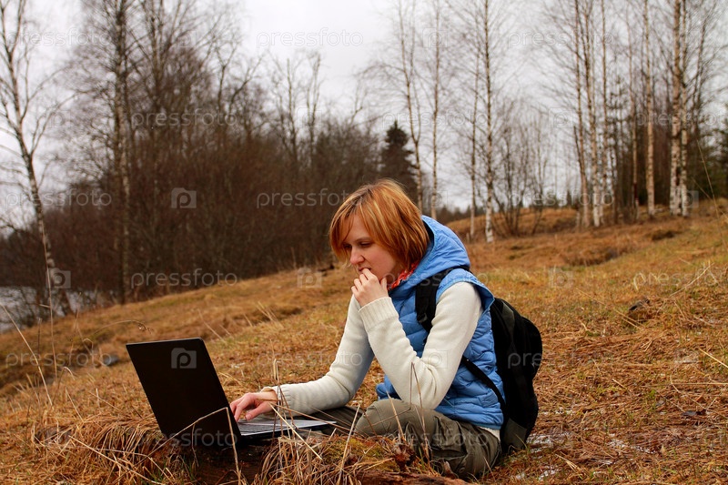 Проверка почты на ноутбуке в лесу