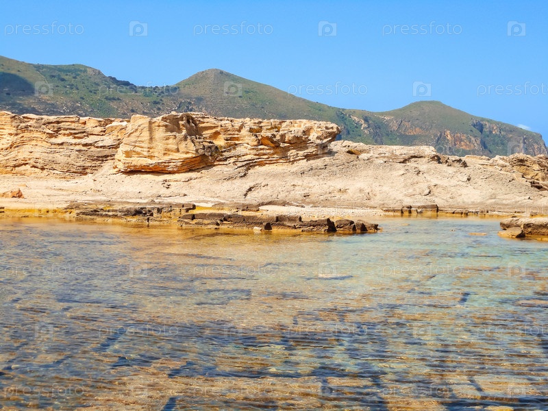 Вид скалистого берега на острове Сицилия