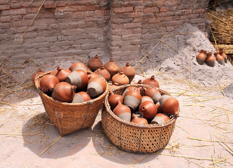 Традиционные непальские керамика в корзине