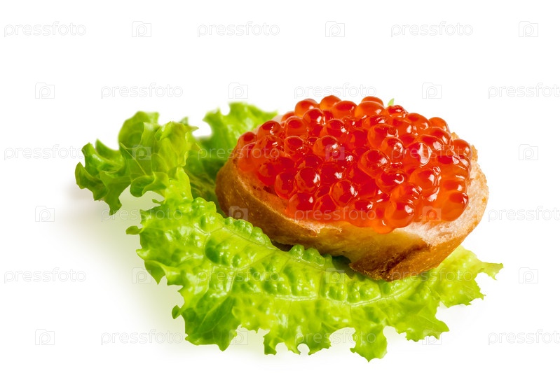 бутерброд с красной икрой, изолированные на белом фоне