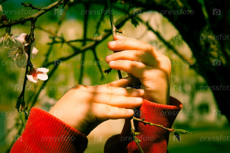 Ребенок трогает ветку