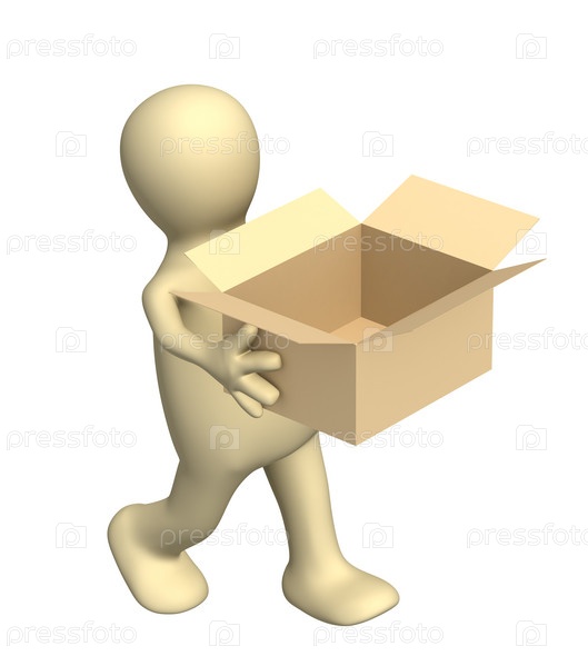 Маленький человек, несущий пустую коробку