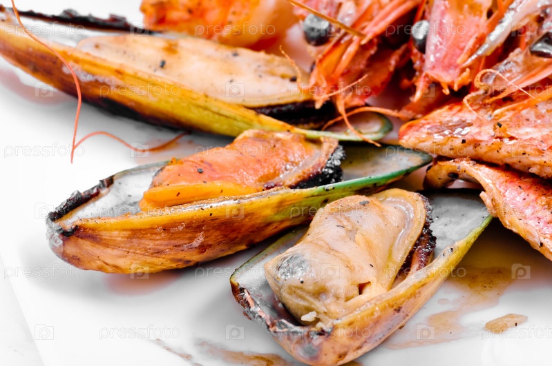 Блюдо из крабов, мидий и креветок