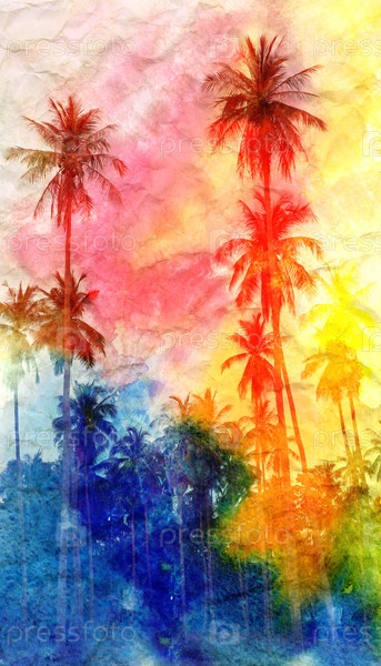 Ретро акварель пальмы