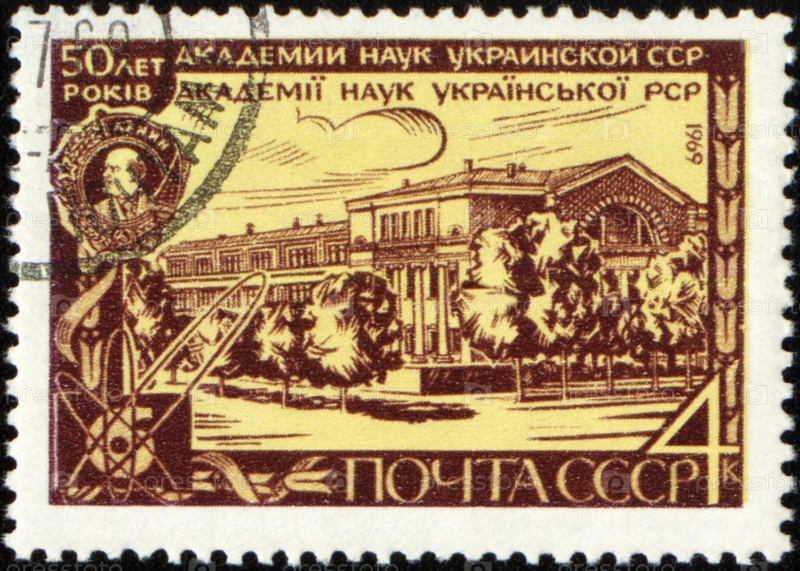 Почтовая марка СССР 1969 года, посвященная посвященной пятидесятилетию Академии наук Украины
