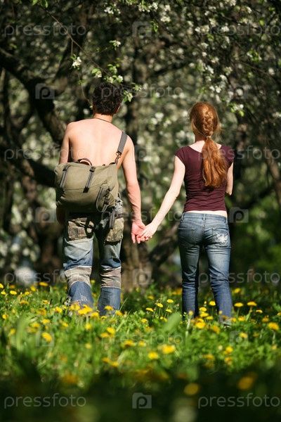 Парочка гуляет, взявшись за руки