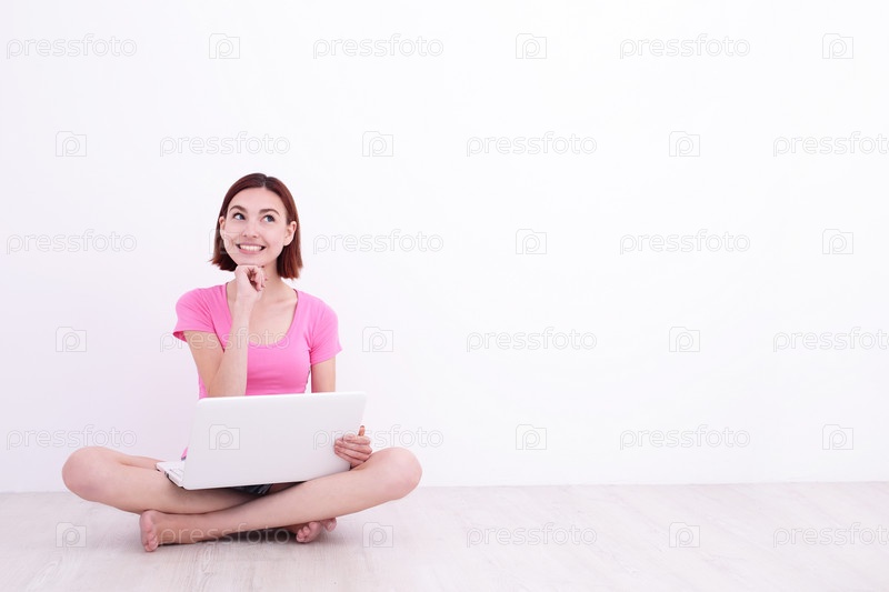 Девушка сидит на полу с ноутбуком