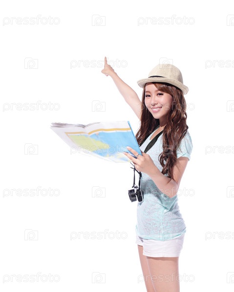 Девушка с фотоаппаратом и картой