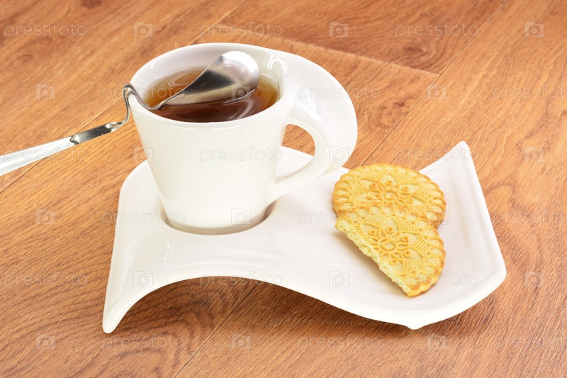 Черный чай в кружку белый и печенье