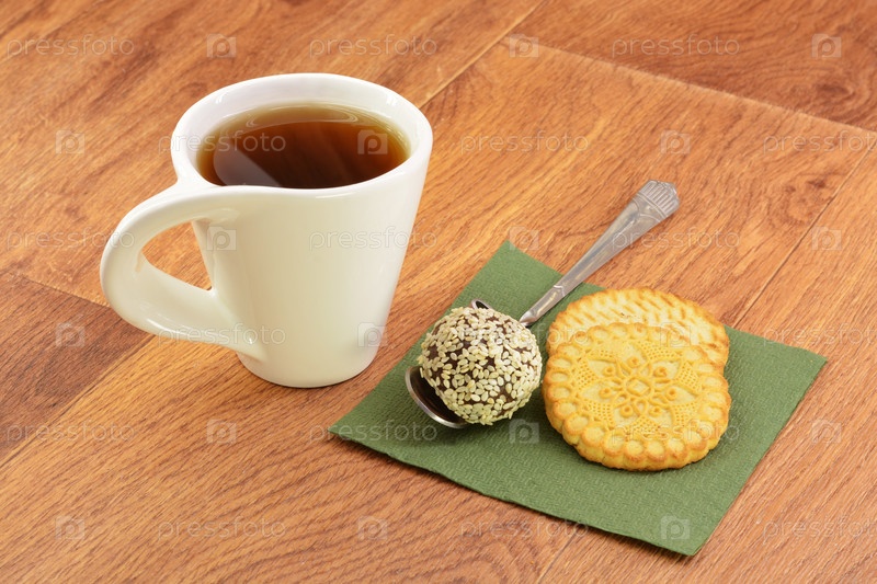 Торт и чай на зеленую салфетку