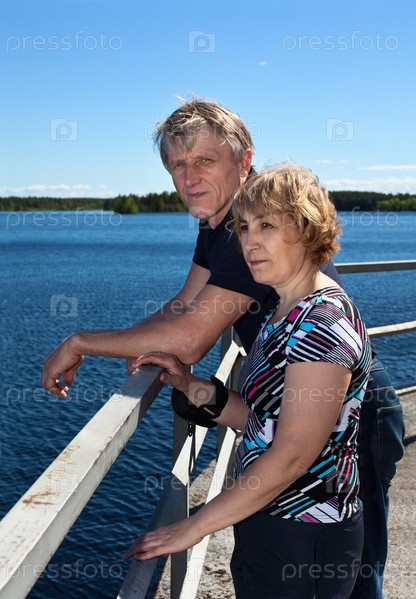 Пожилая пара на берегу озера