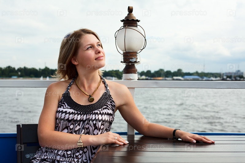 Девушка в кафе на набережной