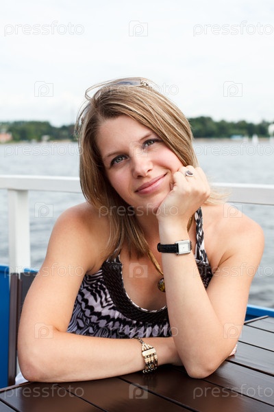 Девушка в кафе на набережной