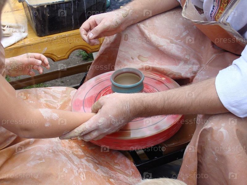 Лепка горшка на гончарном круге