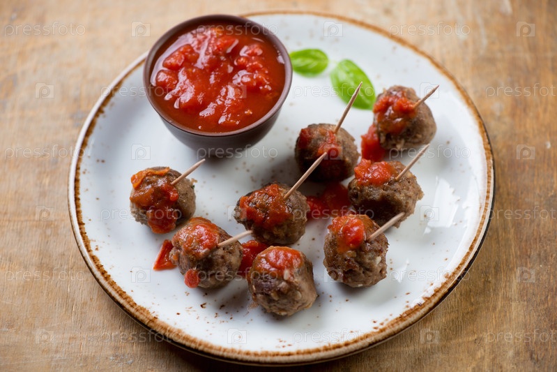 Митболлы на шпажках с соусом