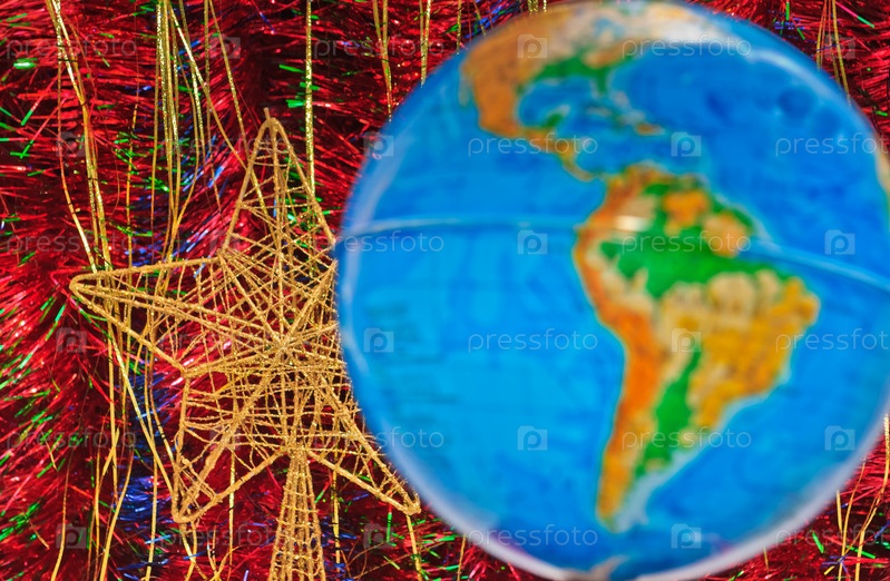Глобус на фоне мишуры