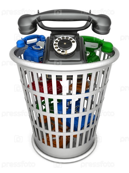 Старые телефонные аппараты в мусорной корзине