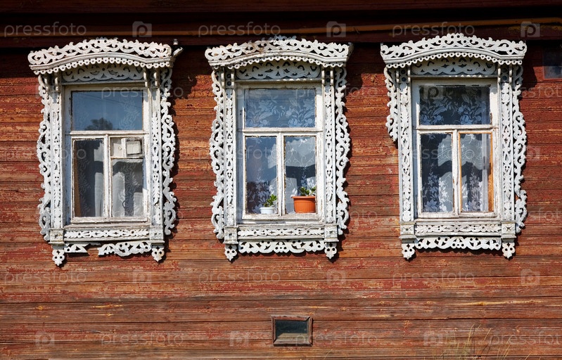 Три окна из старой деревянной сельской стены