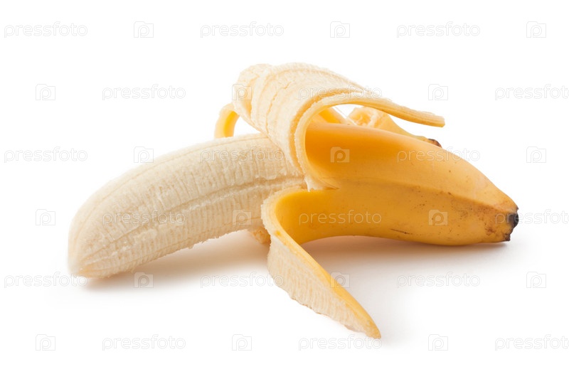 Очищенный банан на белом фоне