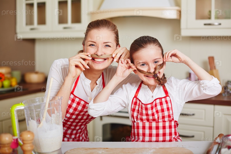 Мать с дочерью готовят на кухне