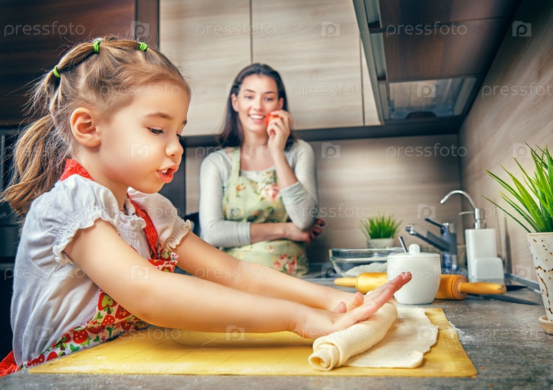 Мать с дочерью готовят на кухне