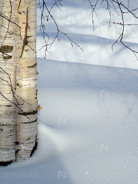 Березовый ствол в сугробе