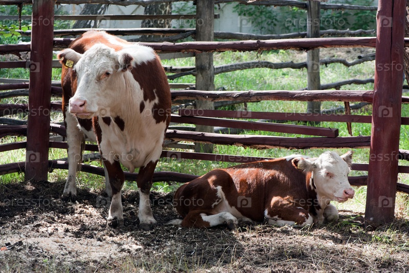 Корова с теленком на ферме