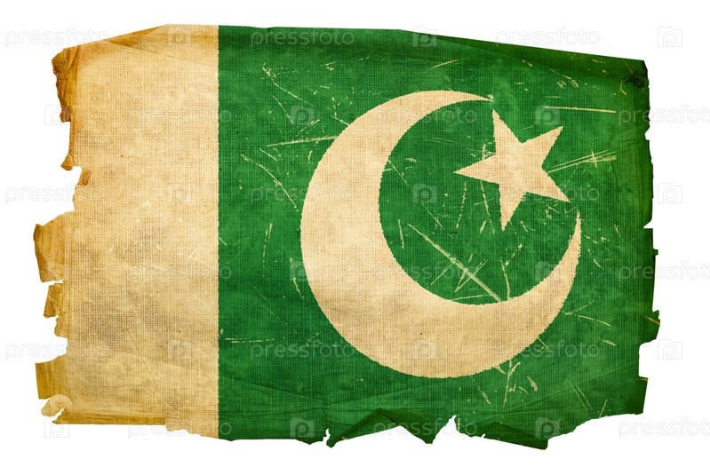 Старый Флаг Пакистана на белом фоне