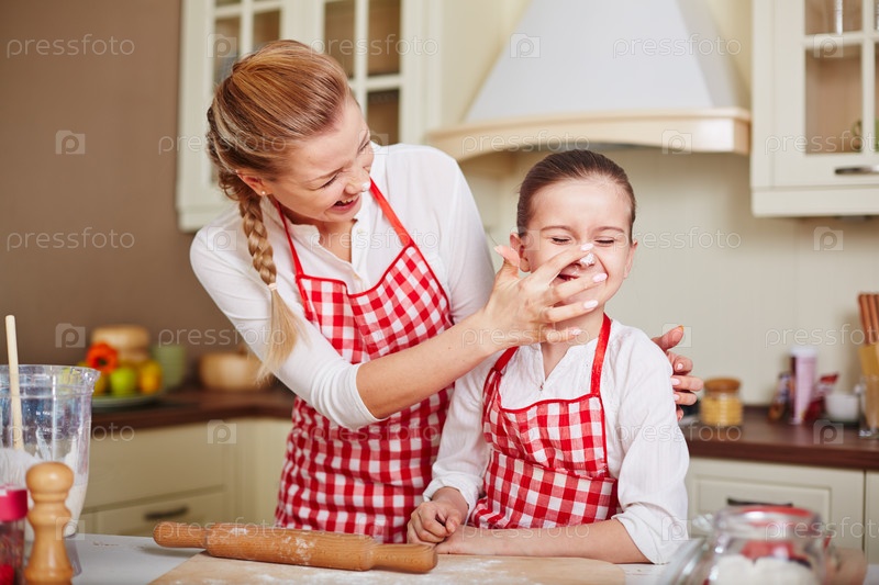 Семья играет с мукой