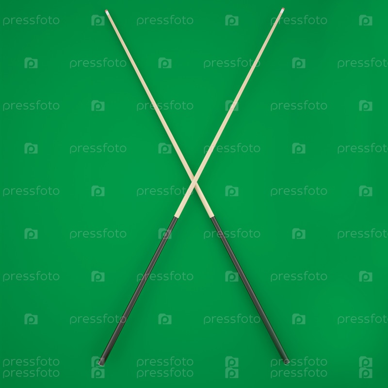 Скрещенные кии на зеленом сукне