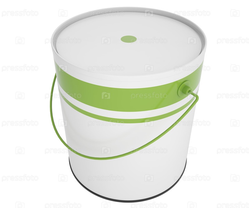 Банка зеленой краски, изолированная на белом фоне